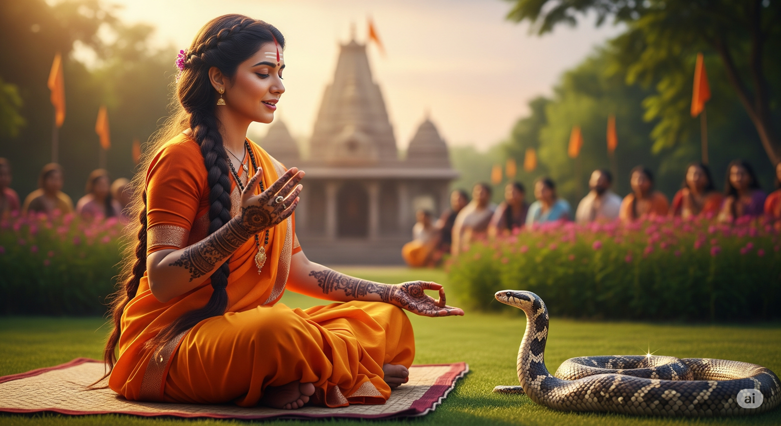 One afternoon, it slithered near the village temple and heard the voice of a Sadhvi—a calm, soft-spoken female saint who taught peace and non-violence.